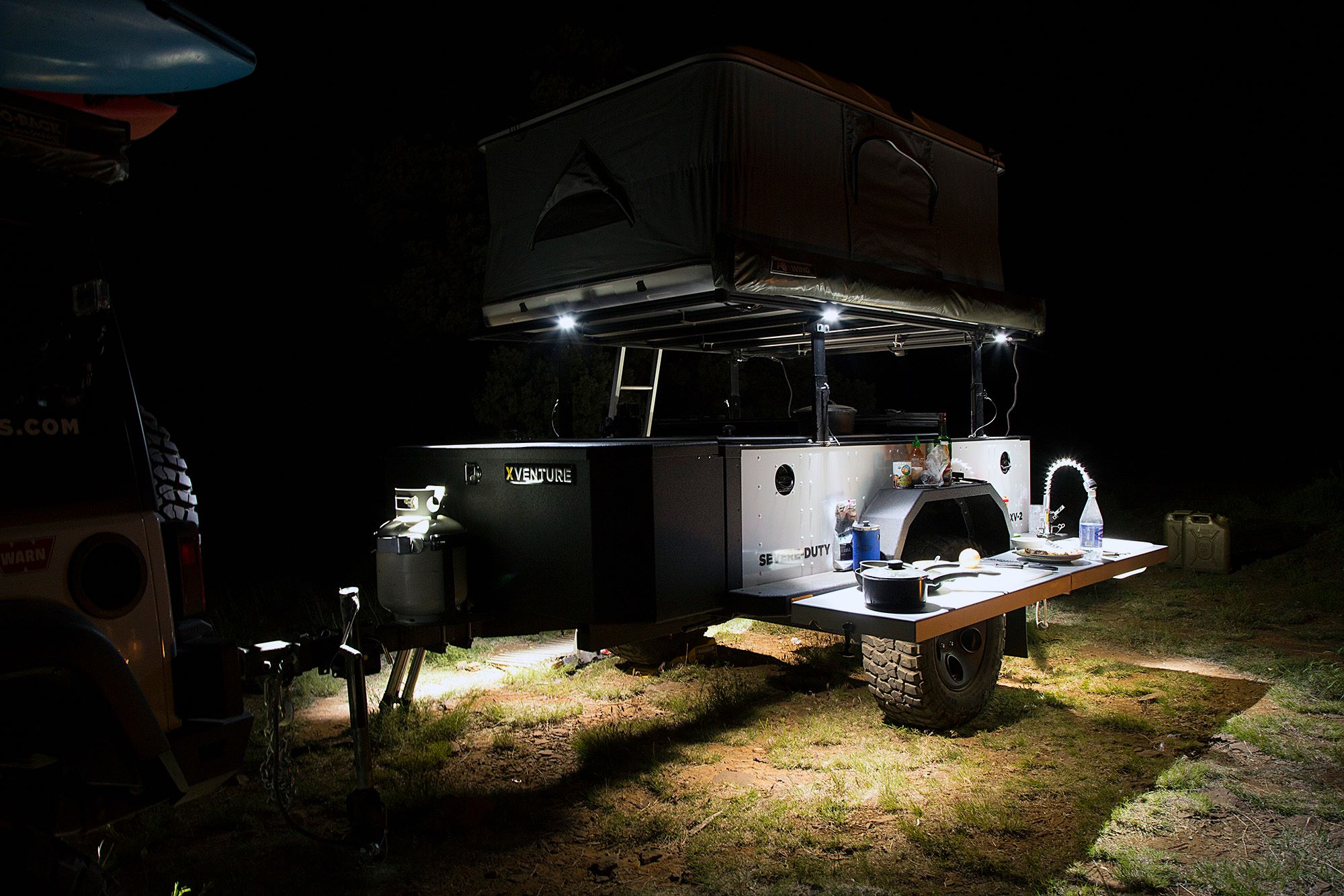 The Basic kit includes four interior cargo bed, four underbody rock lights and 2 rack lights mounted on the roadside of the trailer.